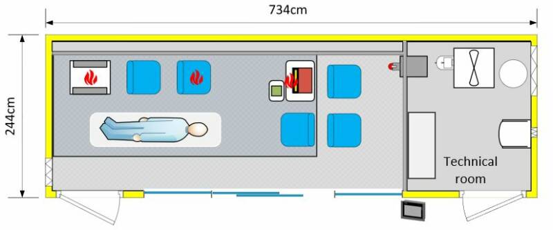 Training for fire incidents on board of medical helicopters can be done in the H7000 Helifire™ cabin fire and smoke trainer. The H7000 Helifire™ is based on the H135/145 which is ghe worldwide leader in Helicopter Emergency Medical Service (HEMS) operations